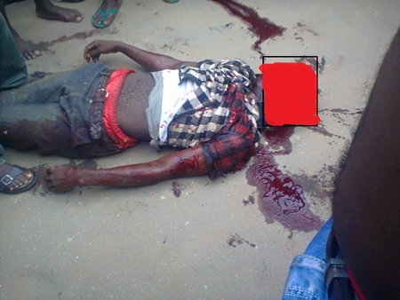 "Sad story as Nigeria Hausa/Fulani police killed innocent man at powerline shoe industrial area Aba, they packed their bus in the shoe maker's line and entered at the back where few people enter to smoke, on their way going while people stood up to watch what was happening police started shooting and killed this innocent man who was working in front of his shop."