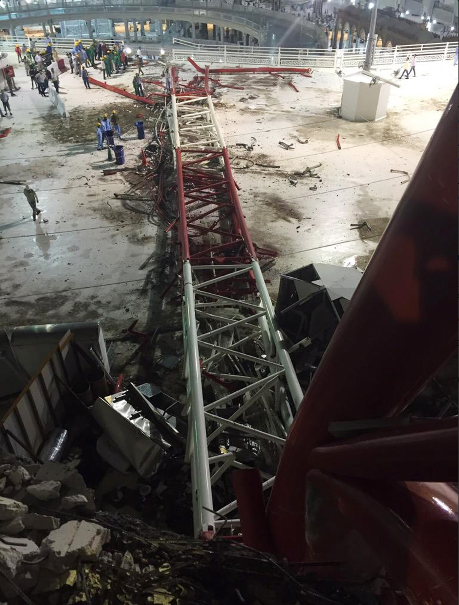 The civil defence authority said on Twitter that emergency teams were sent to the scene after a "crane fell at the Grand Mosque."